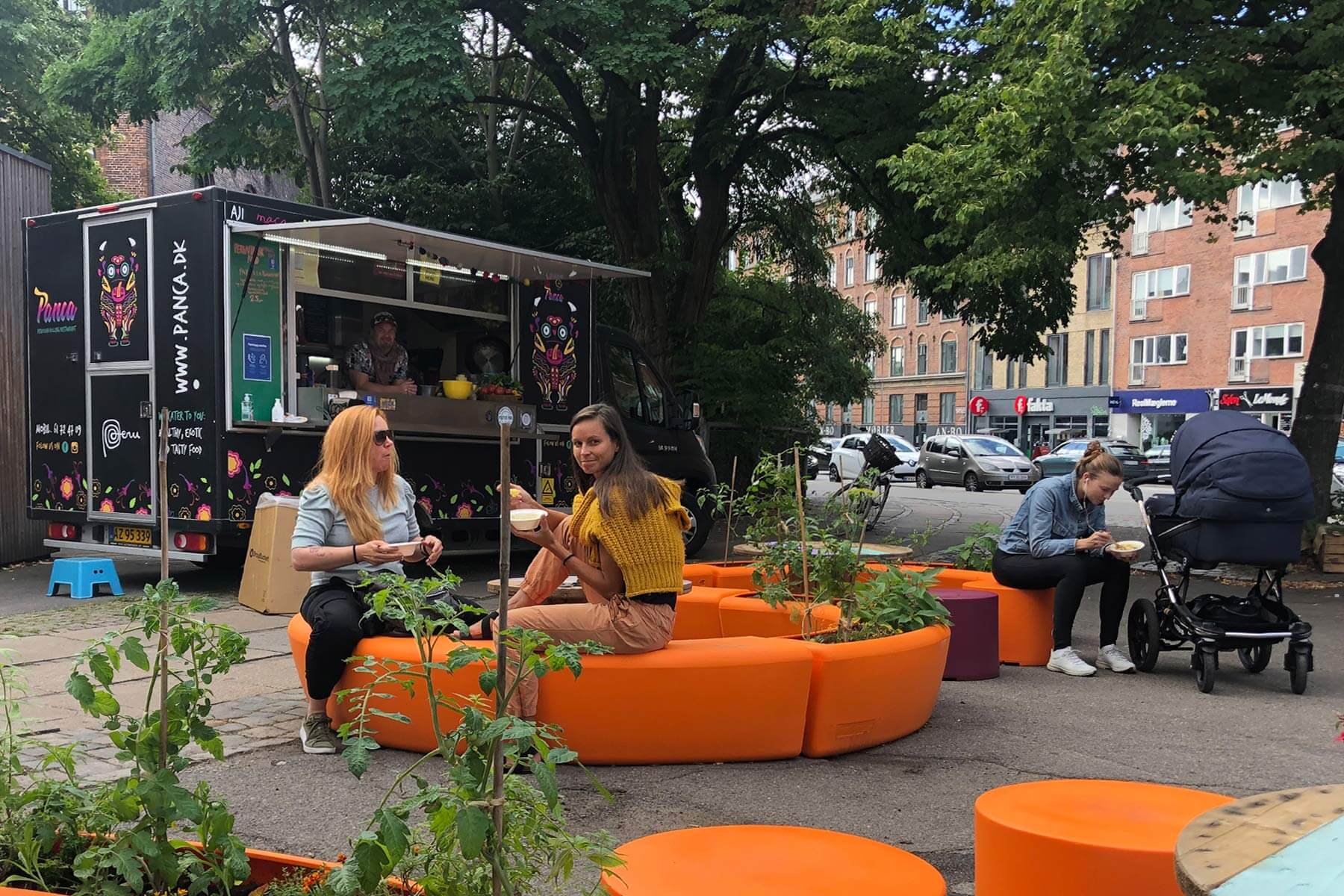 8-10 personer kan sidde indvendigt / 12-14 personer udvendigt. 4-5 børn kan lege i midten.