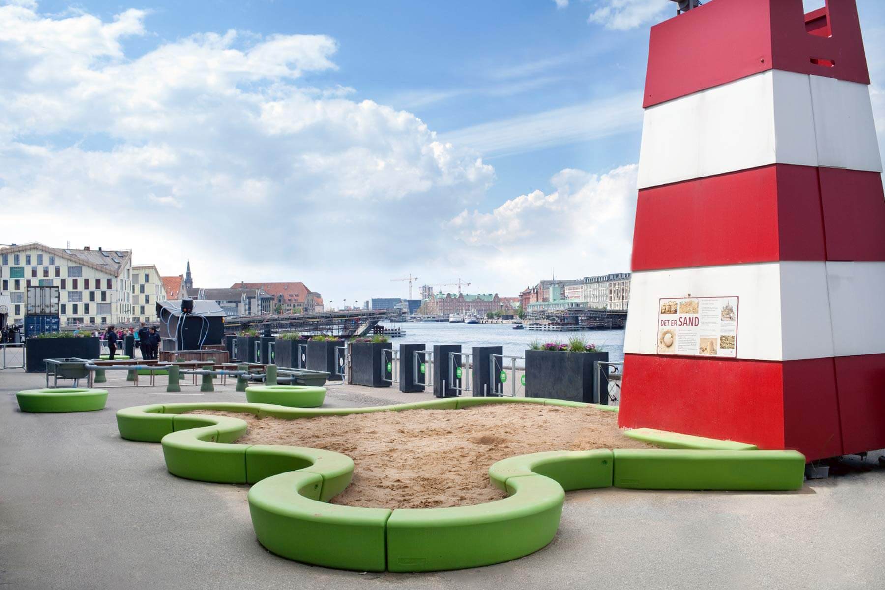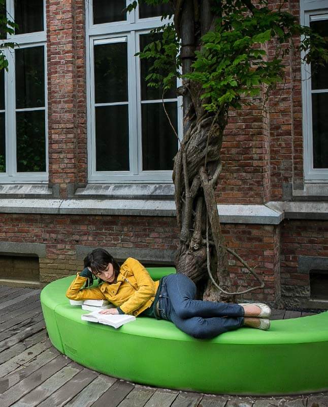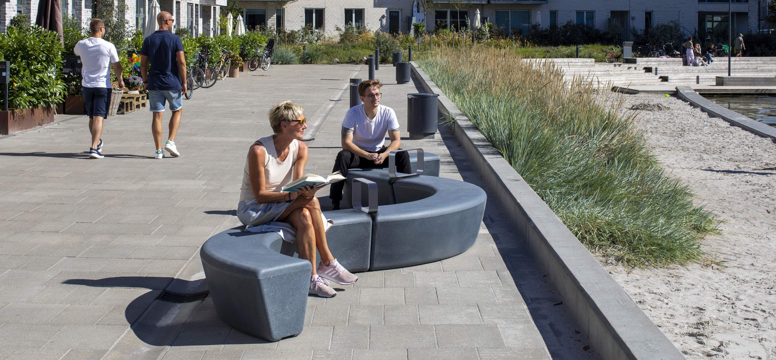 Loop Arc fremmer interaktion og samvær. De buede former skaber en blød struktur, der byder ind til bevægelse og ophold. Møblets variation giver rig mulighed for at skabe interessante rumkonfigurationer, der inviterer til at samles, slappe af og aktivitet, mens de også fungerer som et element i uderummet.
