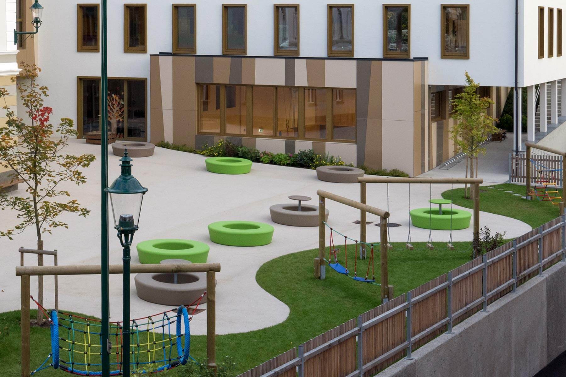 Ideelt til legepladsen, skolegården eller den grønne oase