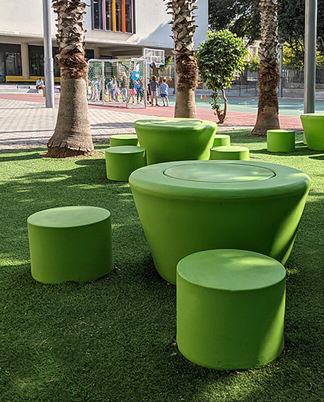 Skab runde og bølgeformede siddepladser med indskudte bordeEn samtalestarter