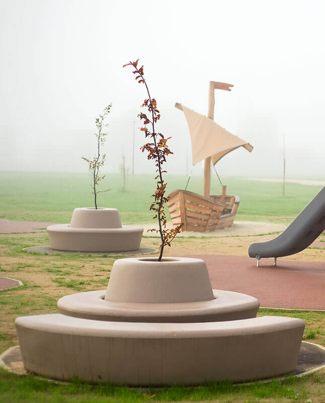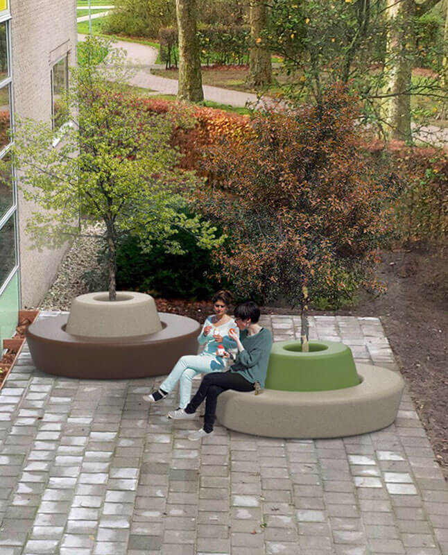 Loop Cone placeret midt i en Loop Circle fungerer den som ryglæn. En plante kan placeres i midten af Cone, eller man kan vælge en topplade til at dække ”hullet”