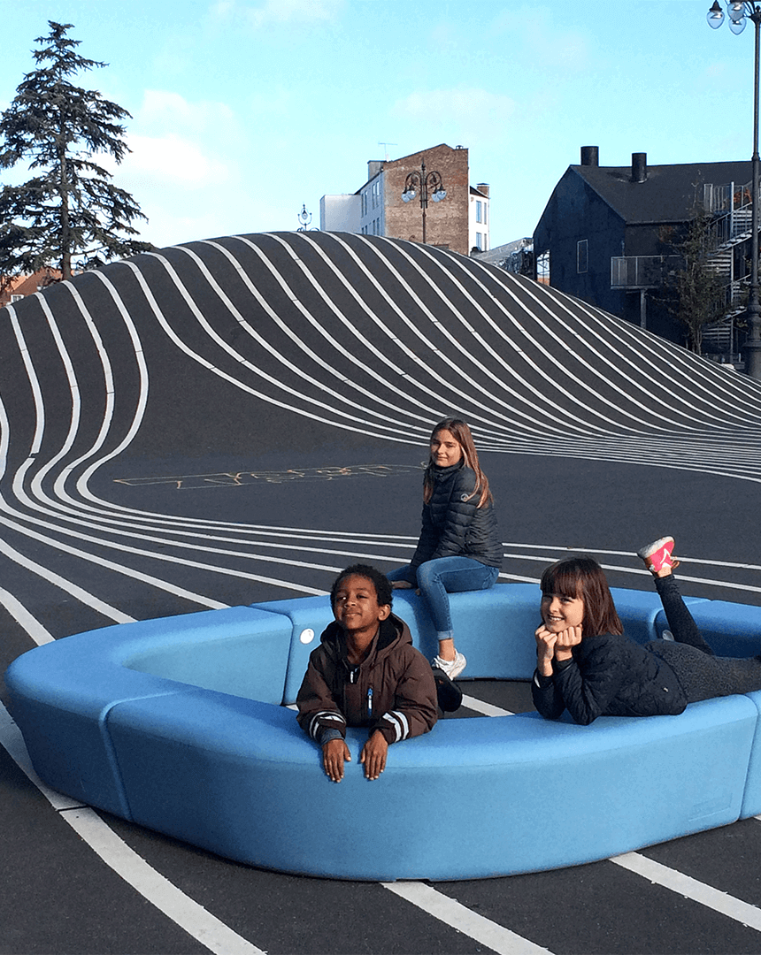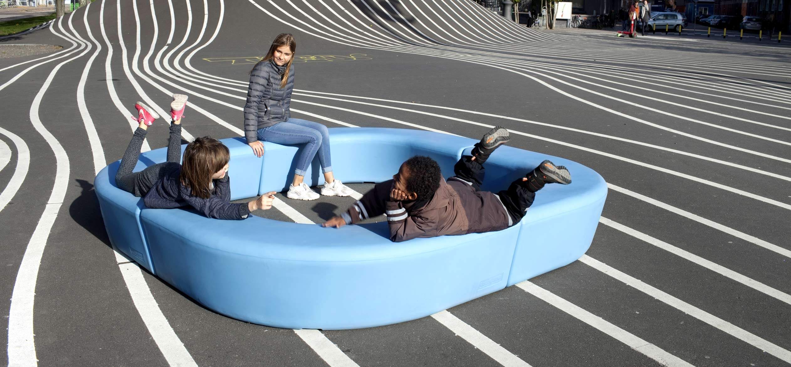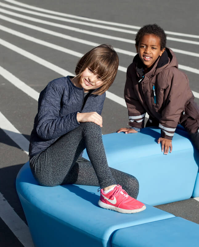 Loop Corner kan også designes og anvendes som bænk i mange forskellige former. Ved at for eksempel, at samle 4 moduler dannes en kvadrat. Armlæn kan tilføjes mellem modulerne. Loop Corner fungerer også som selvstændigt modul, hvis et hjørne ønskes i skolegården eller på legepladsen. Møblets variation giver rig mulighed for at skabe interessante konfigurationer, der inviterer til at samles, slappe af og aktivitet.