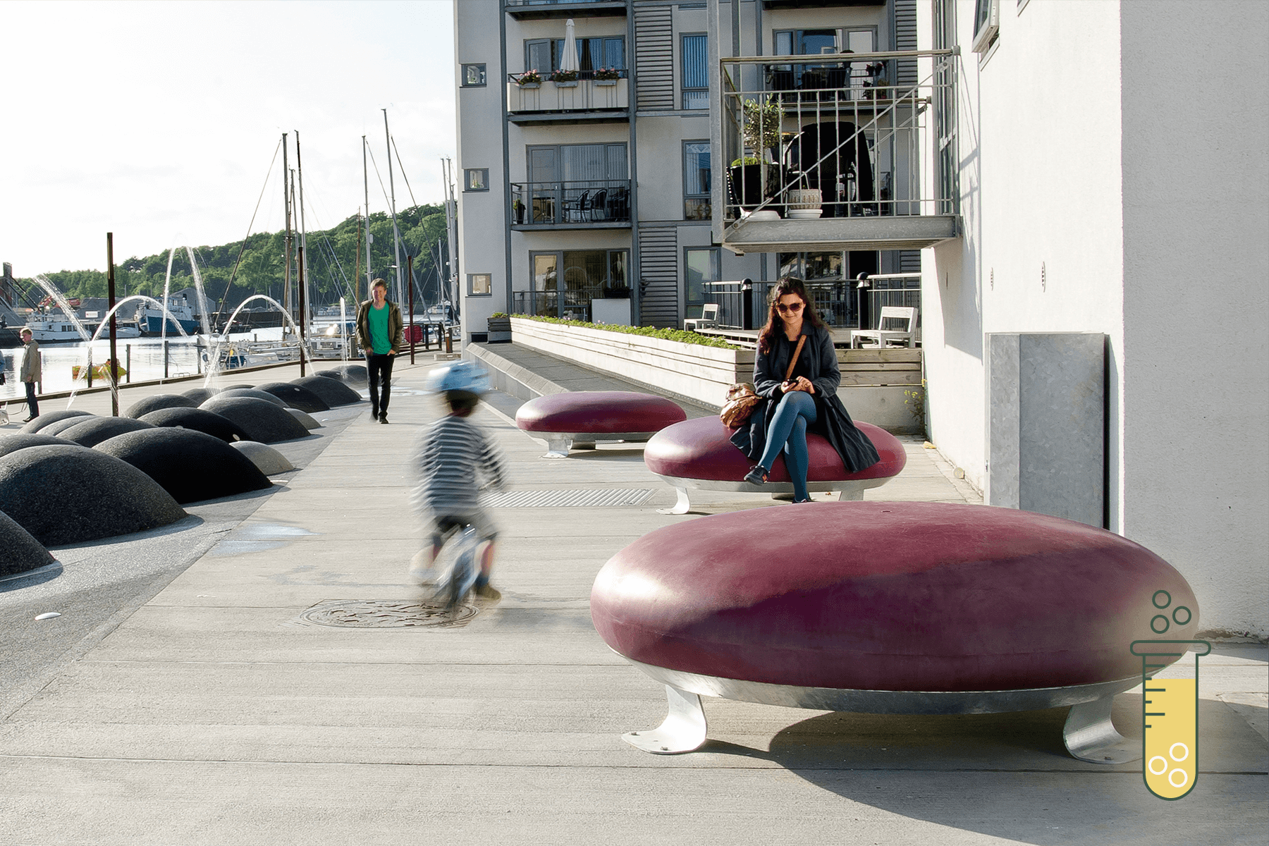 Lidt mere end en bænk. Opgaven var at udforme en bænk, som kunne skabe afstand til nogle lavt siddende altankasser, for at forhindre de gående i at støde på altankassernes hårde hjørner.