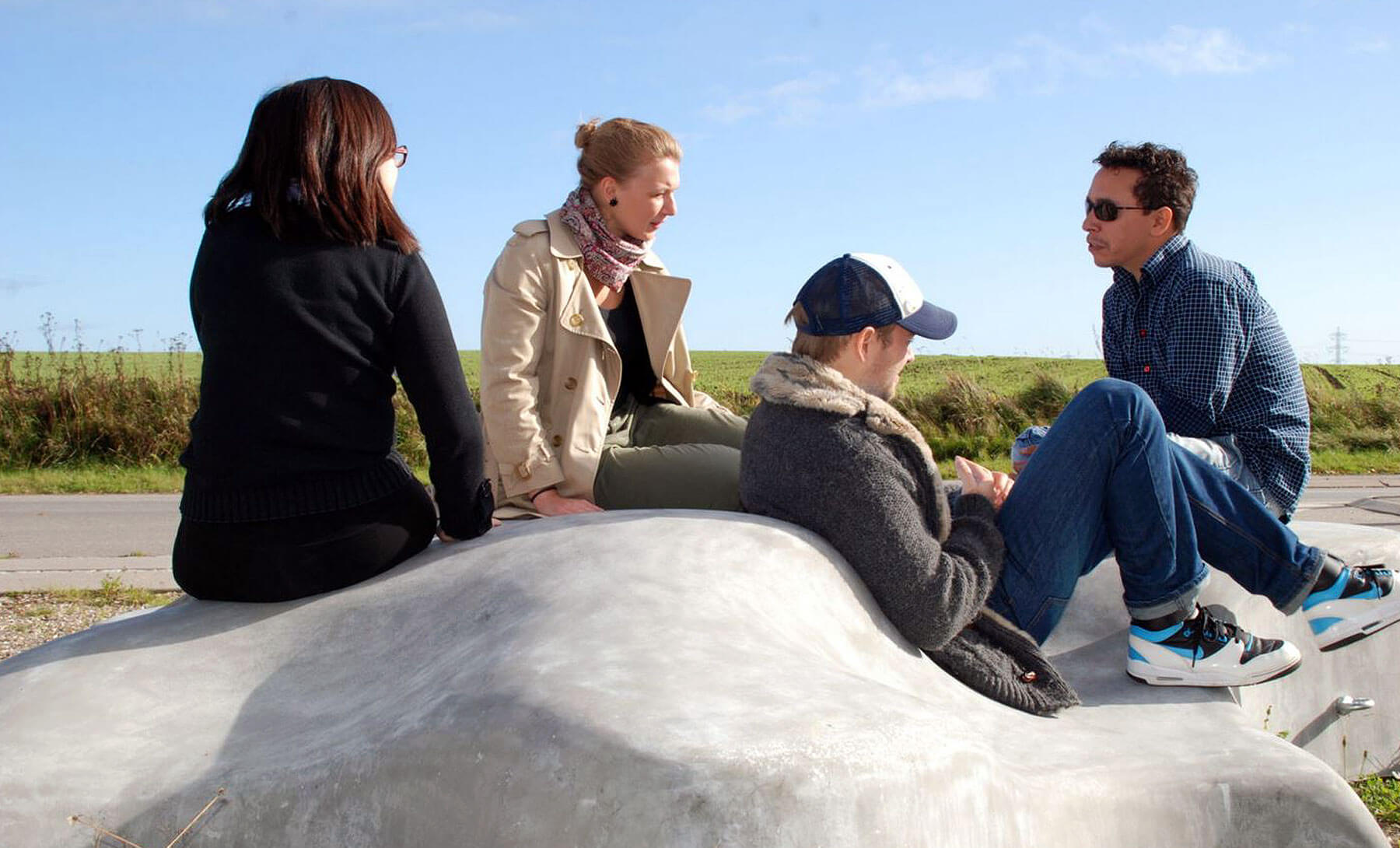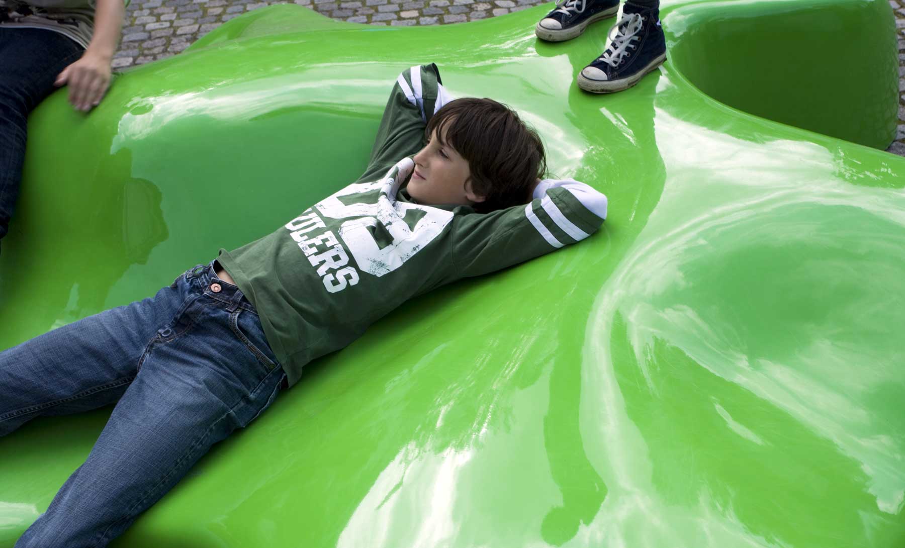 Skulpturel bænk til byrummet eller børnehavenSkulptur som samler til en pause