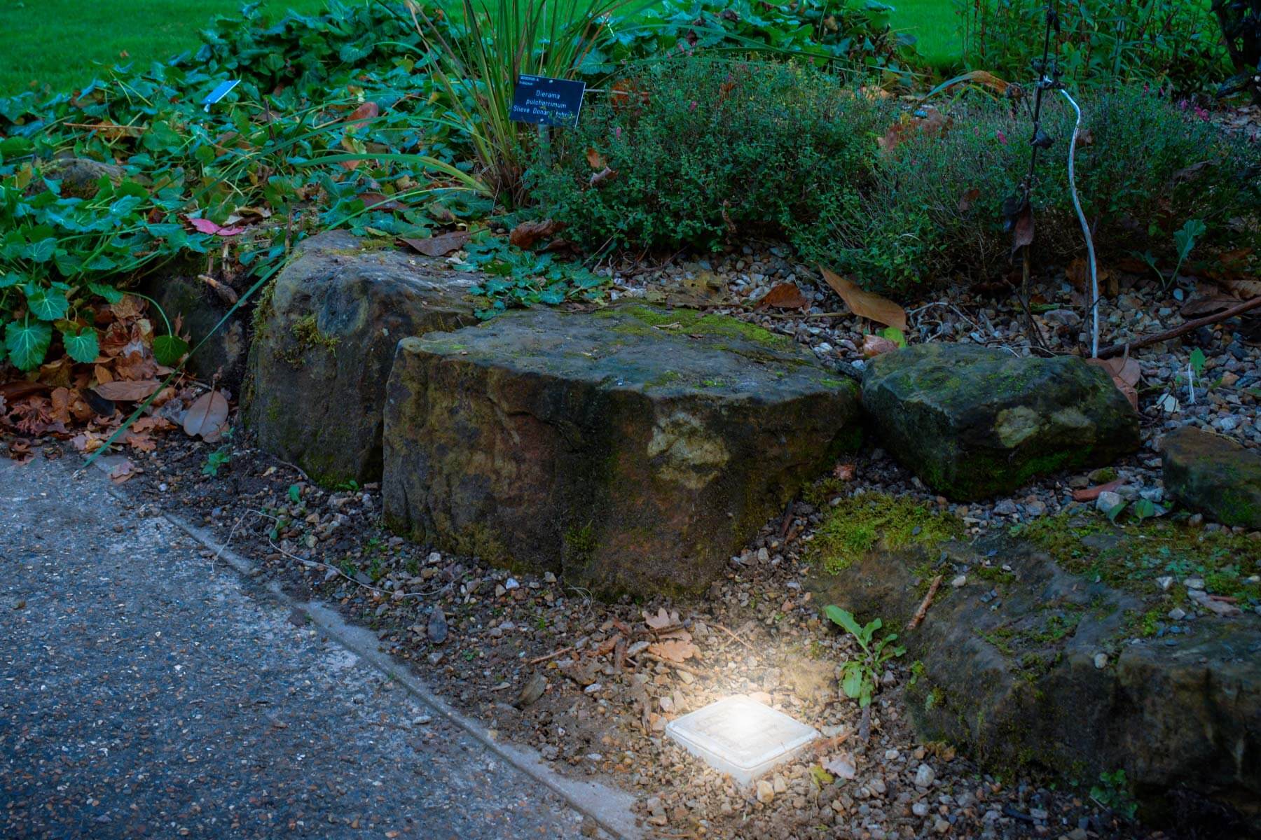 Den tilføjer en atmosfærisk belysning eller fungerer som vejviser i stier, gårde, parker og grønne områder. Derudover kan stenen også monteres på lodrette flader som vægge eller mure og tilføje en unik visuel effekt i forskellige udendørs miljøer
