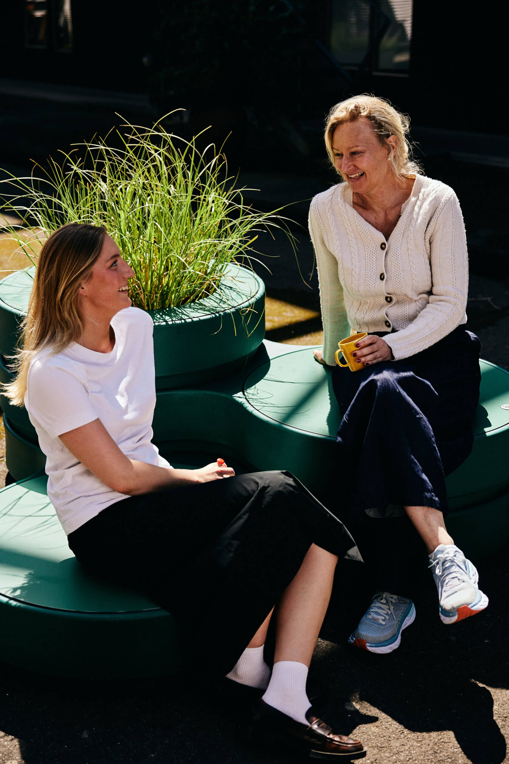 The three levels invite layered interaction – you can sit high or low, stay in the middle of it all, or retreat slightly. The combination of function and form makes Trio a natural gathering spot in everything from schoolyards to plazas and parks.