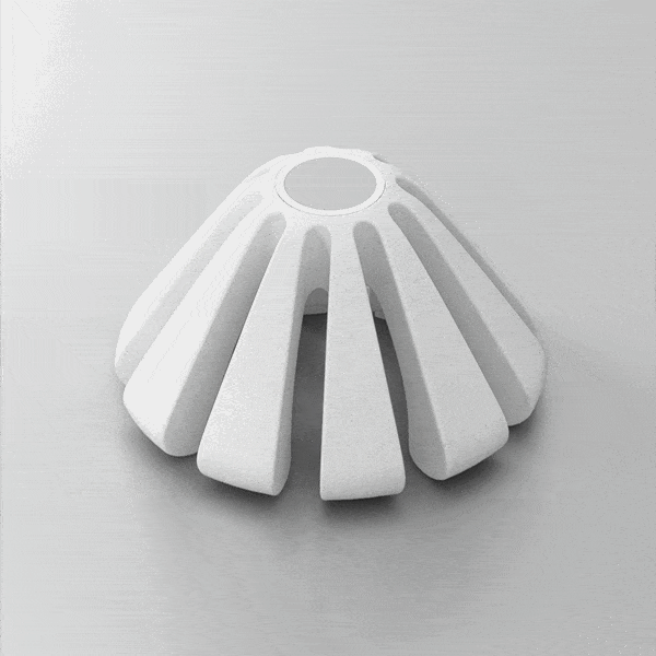 The top-mounted solar unit emits ambient, indirect light, pointed downwards. Light diffuses through slits to create a star pattern. During daylight hours the solar energy gets stored on a battery – through a solar cell. At dusk, the light will turn on and light up all evening and night, according to the charged energy. At sunrise, the light will turn off again. The light output is auto-calibrated by a building-in algorithm (after 3-5 days of sun exposure) to the time of year to prolong the light.