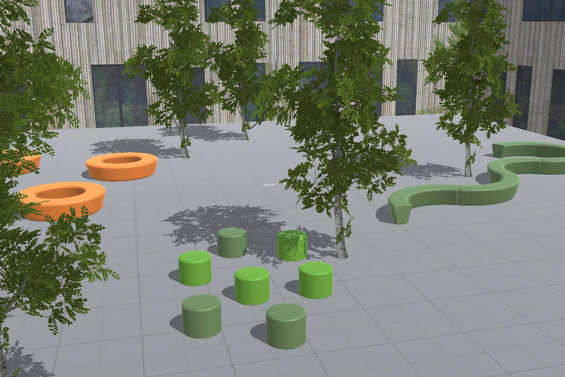 The ViZU tool is a simple 3D online tool for visualization of your ideas. You can decorate your space with all the furniture from our LOOP family, play with colors, add trees, and specify your working area