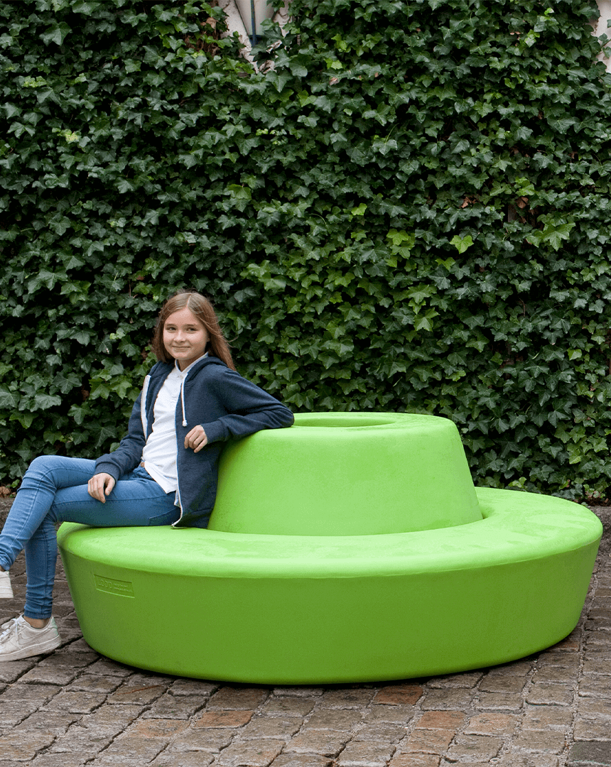 Loop Cone placed in the center of a Loop Circle acts as a backrest. A plant can be placed in the center of the Cone, or you can choose a table top to cover the 'hole'