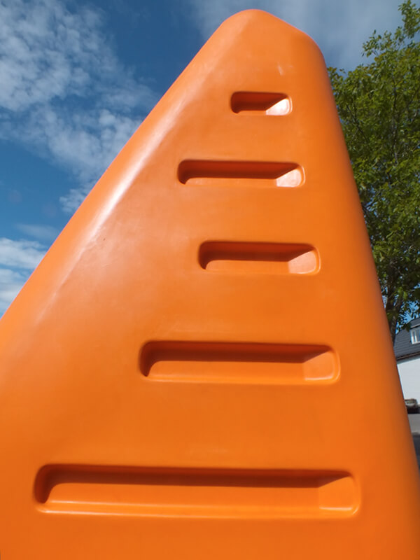 Material: Rotation moulded polyethylene, 10-12mm thick, dyed.