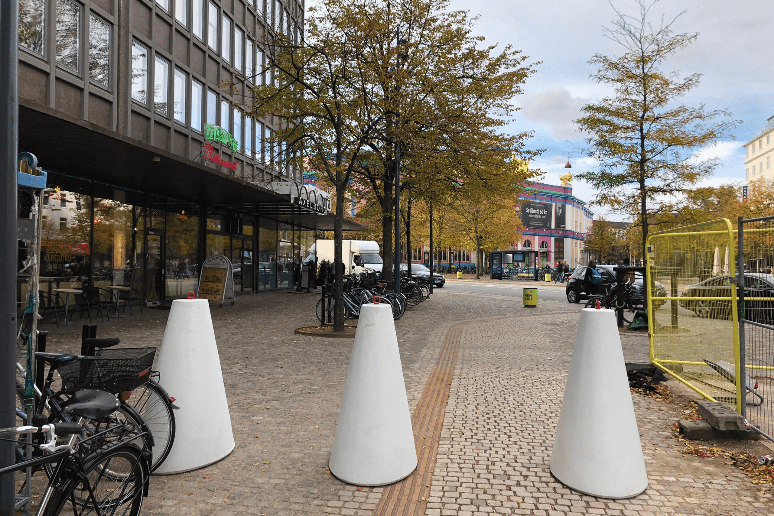 The security bollard, Chicane was part of the project, as seen here on Axeltorv, a side street to Copenhagen City Hall